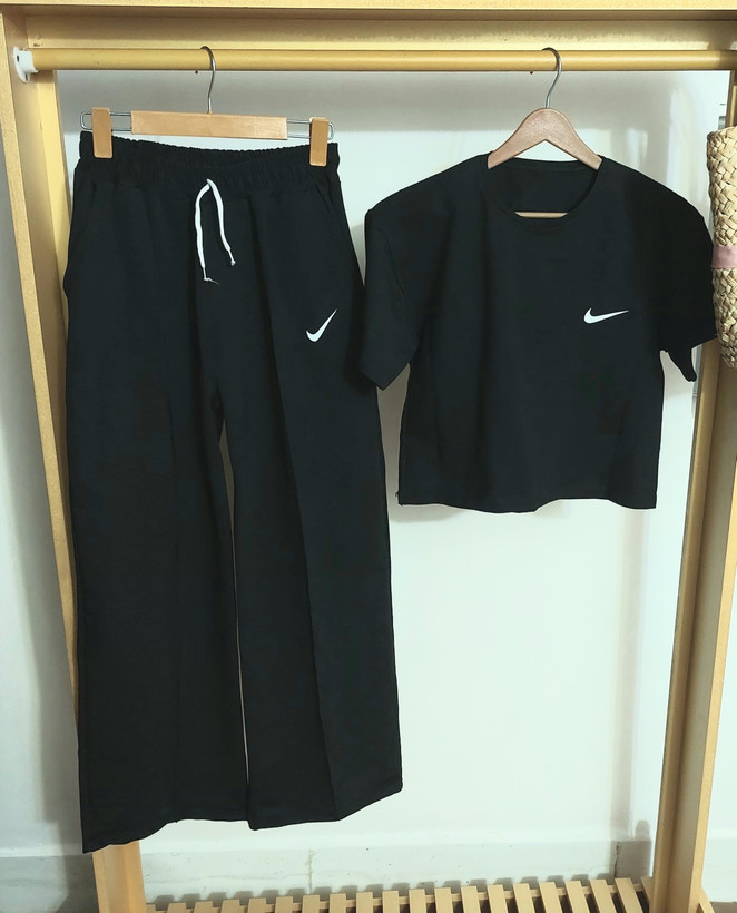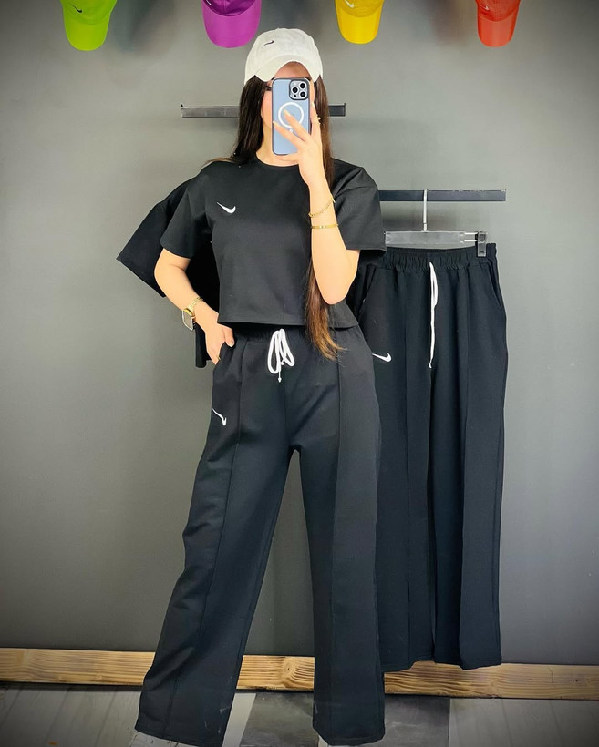 خریدجدیدترین ست کراپ شلوارزنانه بگ گلکسی مشکی نایک با قیمت۴۲۵