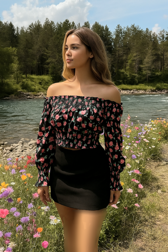 طرح گلگلی و برش کراپ، ظاهری جذاب و به روز به این شومیز میبخشد.