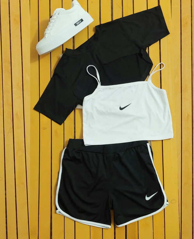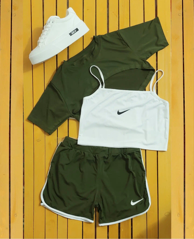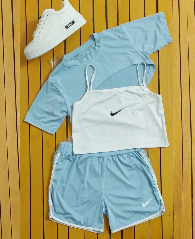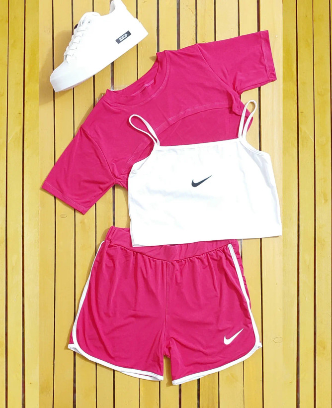خرید جدیدترین ست سه تیکه زنانه اسپرت ورزشی فلامنت تاب و کراپ وشورتک پرفروش سال