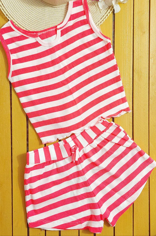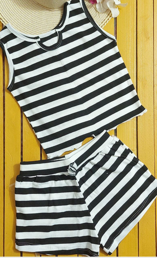 خریدجدیدترین ست کراپ شورتک زنانه کبریتی راه راه