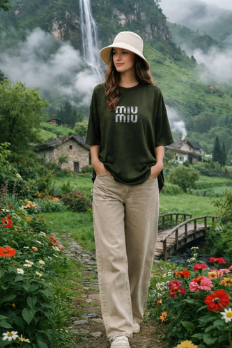 خرید جدیدترین تیشرت لانگ باکسی miumiuجنس سوپر اسپان لاکرا